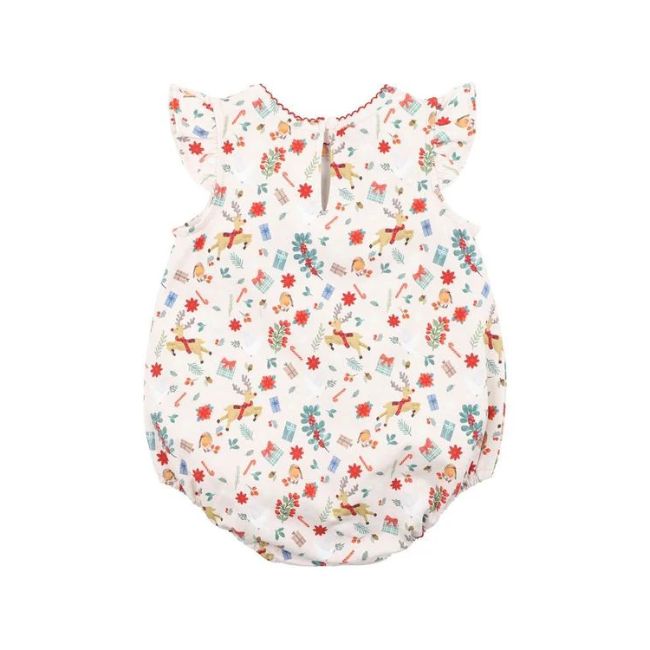 Bebe - Festive: Print BodysuitGet into the Christmas spirit with this gorgeous festive print sleeveless bodysuit featuring armhole frills, contrast picot neck trim, elasticated leg openings, a back neck button opening and a concealed press stud crotch opening for ease of dressing.
