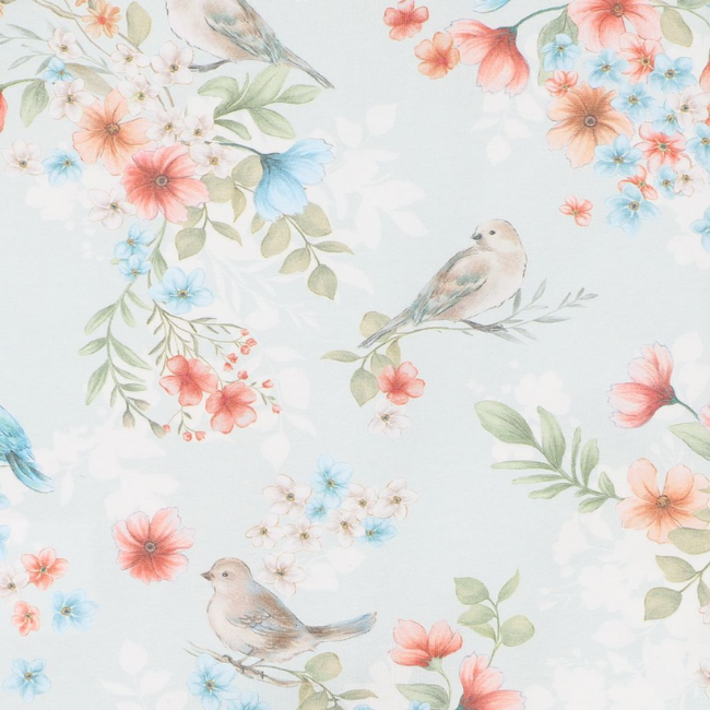 • All-over floral and bird print