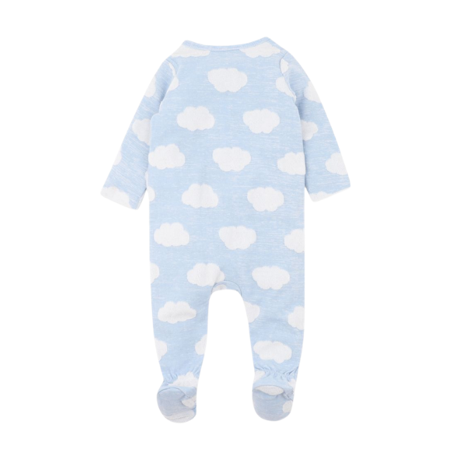 Bebe White Label Organic - Cloud: Long Sleeve Jacquard Onesie BlueA dreamy little essential for sleepy snuggles and cosy days at home, this sweet blue cloud jacquard onesie is designed for comfort, cuddles and quiet moments. Made from beautifully soft organic cotton blend jersey with thoughtful finishes for baby’s comfort, it’s the perfect all-in-one for day or night.