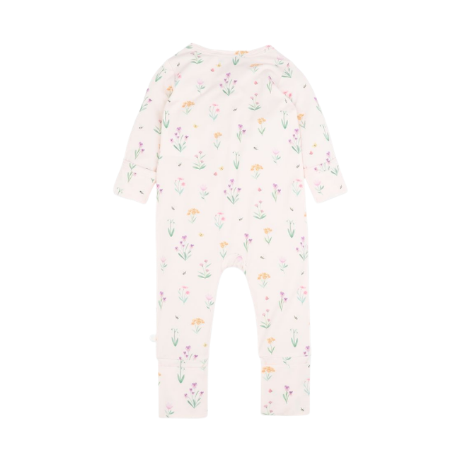 Bebe White Label Organic - Eliza: Long Sleeve EcoCosy™ ZipsuitA soft and dreamy all-in-one for little explorers, this sweet floral romper is made for cuddles, naps and everyday adventures. With its gentle EcoCosy stretch fabric and practical two-way zip, it keeps dressing simple and comfy, while fold-over mittens and feet make it perfect for cooler days and cosy sleeps.