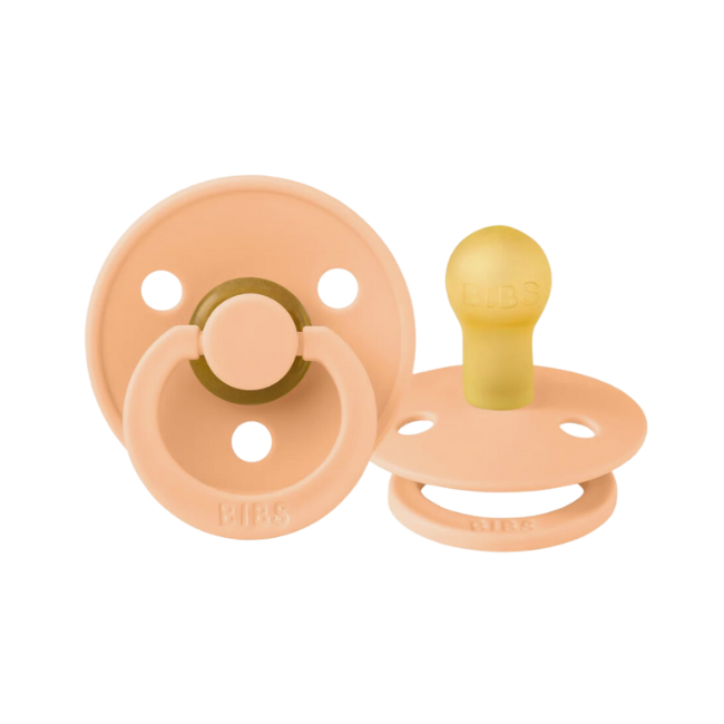 BIBS Dummies - 2 Pack Colour: Peach Sunset- Nipple shape: 100% Natural Rubber 'Cherry' shaped nipple like mother’s breast, the favourite pacifier for most children.