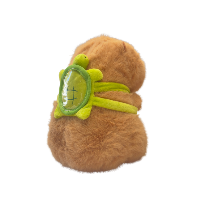 Say hello to the ultimate chill companion, a cute plush capybara wearing a sweet and adorable tiny turtle backpack!