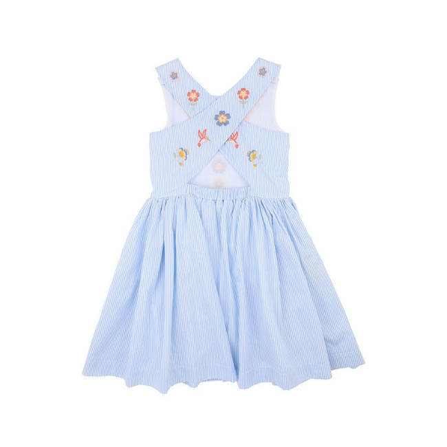 Fox + Finch - Songbird: Stripe Embroidered Cross Back DressPerfect for warm-weather days and special celebrations, this embroidered dress is a fresh and cheerful addition to a wardrobe.