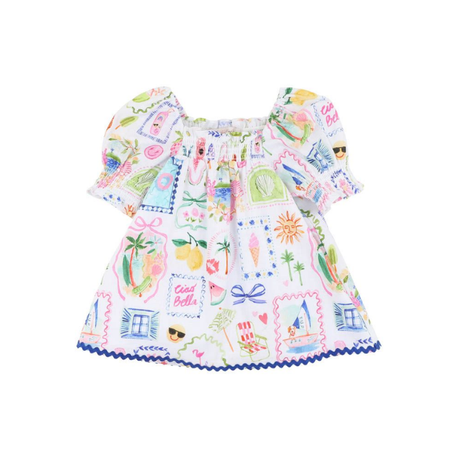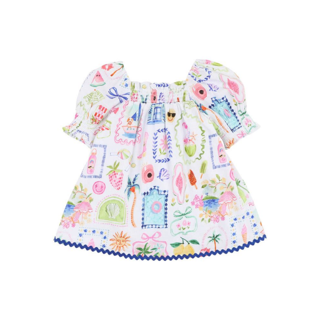 Fox + Finch - Summer Vacay: Ric Rac DressA little postcard from paradise, this sweet baby dress is bursting with colour, charm and holiday cheer.