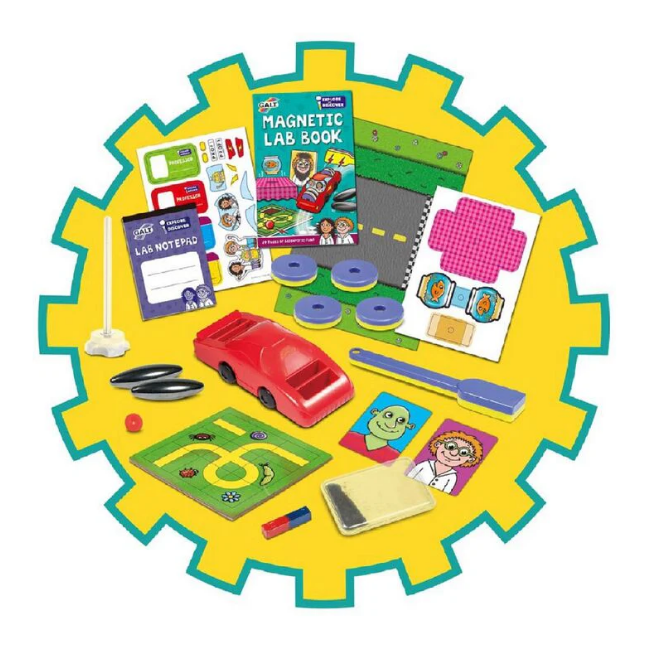 Galt - Magnetic LabExplore the marvels of magnets in the Galt Magnetic Lab science kit, designed for children aged 6 and up. Engage in nine fun experiments including driving a racing car without touching it, making rattlesnake sounds, performing levitation tricks, and designing marbles' mazes. The kit also allows you to create funny hairy faces using iron filings.