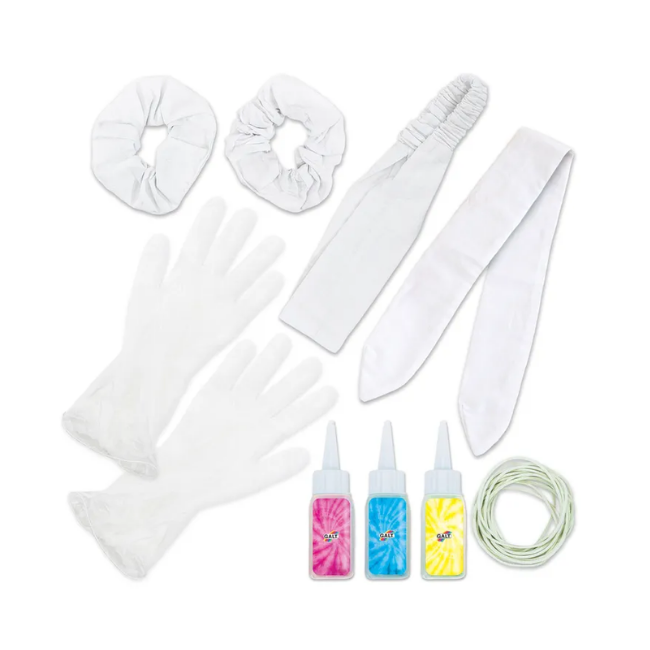 Galt - Tie Dye KitMake fabulous hair accessories with the easy-to-use coloured dyes. Wrap the elastic bands around the fabric to create vibrant tie-dye patterns.
