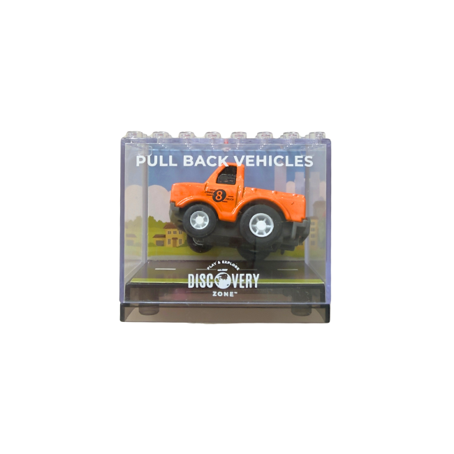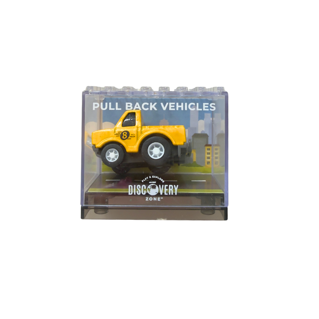 isGift - Discovery Zone: Mini Container VehiclesGet ready to roll with these fun and sturdy diecast metal pull backs, each packed in its own mini plastic shipping container. Perfect for kids who love vehicles, collecting, or creating their own mini construction zone, these trucks are built for action and designed to spark hours of imaginative play.