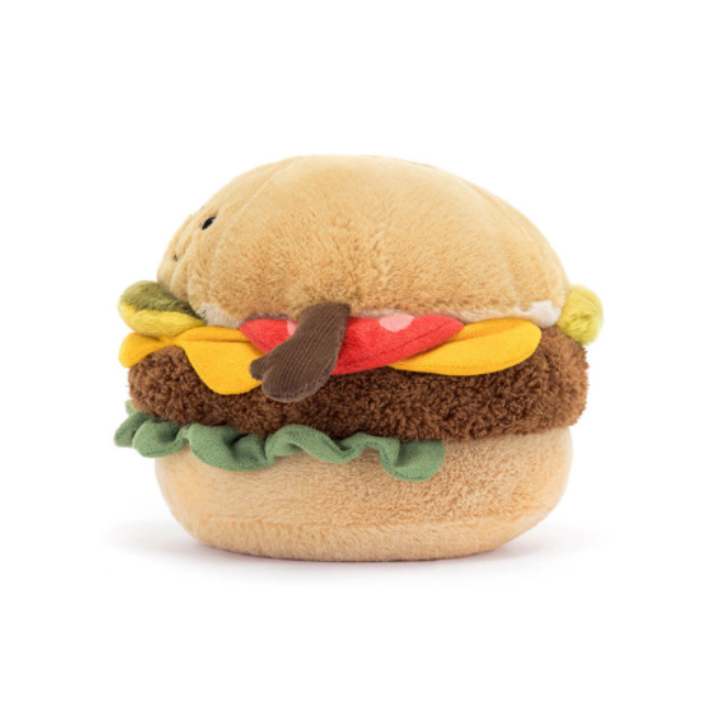 Jellycat - Amuseables: BurgerAmuseables Burger knows the scene. With a soft bun and the chunkiest patty in town (gherkins, always), he’s been flipping out orders since the New York deli rivalry began.