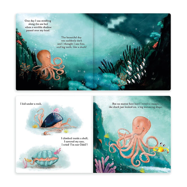 Jellycat Books - Board Book: Odell, The Fearless OctopusFeeling brave? Open up The Fearless Octopus Book! This beautifully written poetic story follows a very courageous octopus! Adventuring can be scary - face those fear with our wriggly hero! A hardback book with gorgeous illustrations, it's a brilliant gift to inspire little readers.