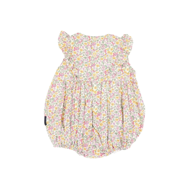 With its pastel yellow floral pattern, smocked bodice, and frilly details, it's made for warm-weather fun. Fully lined for comfort and featuring snap closures for easy nappy changes, it's a go-to for playful summer days.