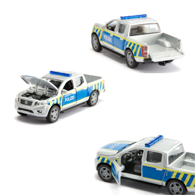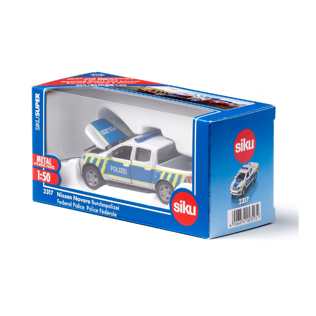 Siku - 1:50 Scale: Nissan Navara Federal PoliceThe well-known Nissan pick-up truck is a symbol of reliability and technical innovation in Europe. Now siku is making it unforgettable as a miniature: the powerful pick-up truck appears in a striking police look on a scale of 1:50.