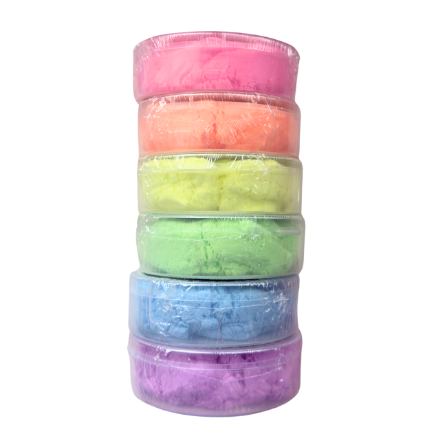 Cloud Putty has many unique qualities; it’s airy, fluffy and light, when stretched or teared it has a silken web like texture, when rolled or moulded it feels like a sticky dough. It can used like a clay and made into figures, scenarios or whatever the imagination desires.