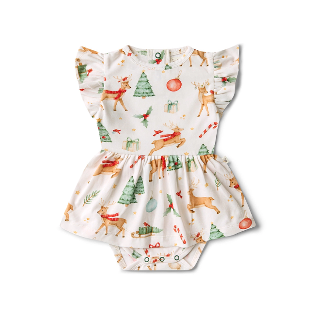 Snuggle Hunny - Organic Dress: Prancer + FriendsSoft and stretchy, our dresses are easy-care and very comfy for bub. The sizes up to and including size 1 come with a snap underbody to go over a nappy. Size 2 and up doesn't have the snap body feature.