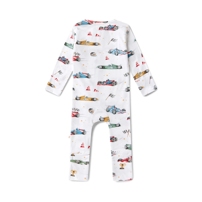 Snuggle Hunny - Organic Snugglesuit Convertible Romper: Little RacersOur Organic Snugglesuits are convertible rompers - zipped onesies with foldover feet. Soft and stretchy, our convertible rompers are an easy-care, fuss-free option with a modern, fitted style. The rompers are made in our SnuggleSoft™ fabric which is buttery soft and one of the many reason our community loves us.
