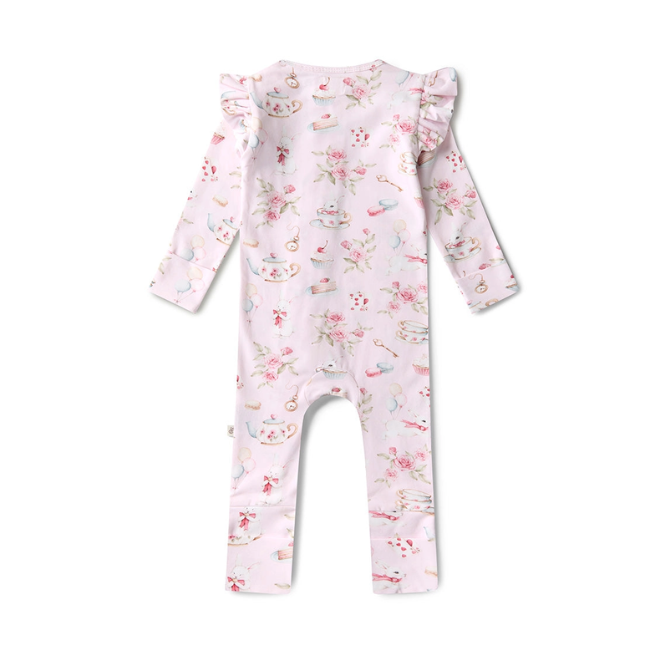 Snuggle Hunny - Organic Snugglesuit Convertible Romper with Frill: Alice's Tea PartyOur Organic Snugglesuits are convertible rompers - zipped onesies with foldover feet. Soft and stretchy, our convertible rompers are an easy-care, fuss-free option with a modern, fitted style. The rompers are made in our SnuggleSoft™ fabric which is buttery soft and one of the many reason our community loves us.