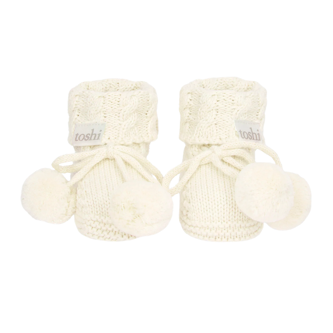 Toshi - Organic Booties Yummy: CreamToshi Organic Baby Booties Yummy are made from the finest quality certified 100% organic cotton yarn. Organic certification ensures the booties are gentle on your baby's delicate feet and kind to our precious environment.